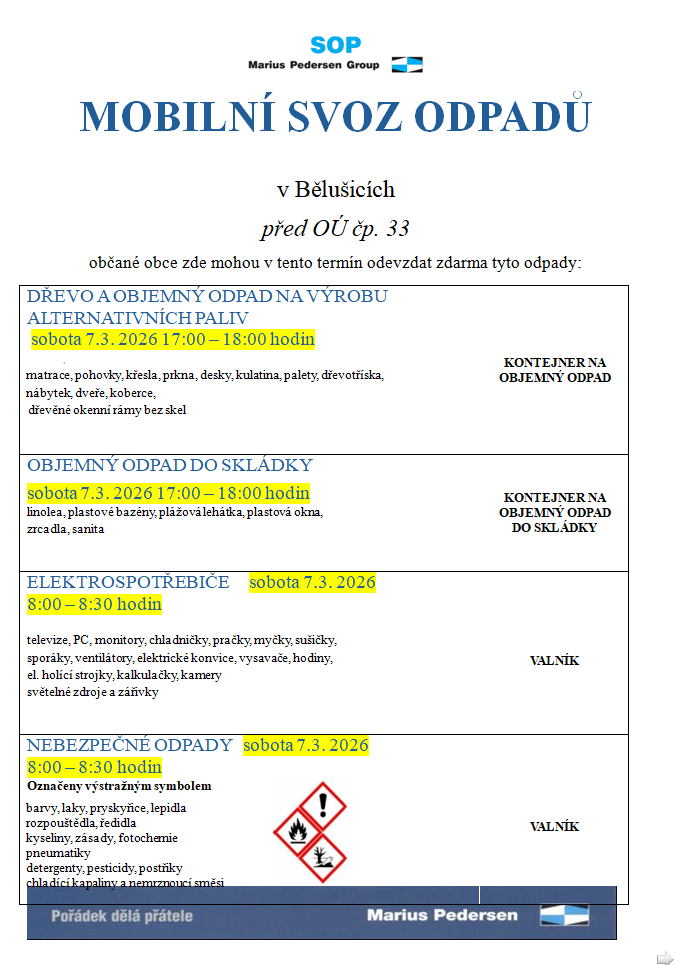 Svoz velkoobjemového a nebezpečného odpadu 7. 3. 2026